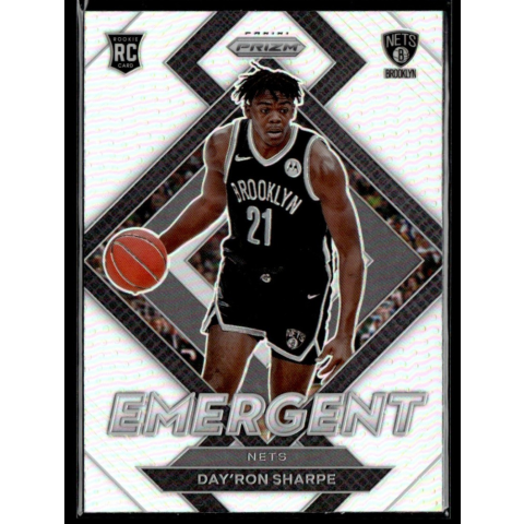 Az eladásra kínált 2021-22 Panini Prizm Emergent Silver Prizms #27 Day'Ron Sharpe kosaras kártya NM-MT állapotban van. A kosaras kártyákat legtöbb esetben UP Platinum/Standard puha védőtokban és/vagy UP Toploader (kemény védőtok)-ben küldjük. Az eladá