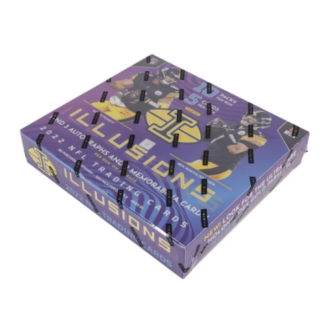 10 CSOMAG/DOBOZ 5 KÁRTYA/CSOMAG 50 KÁRTYA ÖSSZESEN A 2022 Panini Illusions Football doboz tartalma: 10 csomag/doboz; 5 amerikai focis kártya/csomag. Átlagosan garantált 3 Autographs, 2 Memorabilia Cards, 5 Parallels és 10 Acetate/Micro-Et