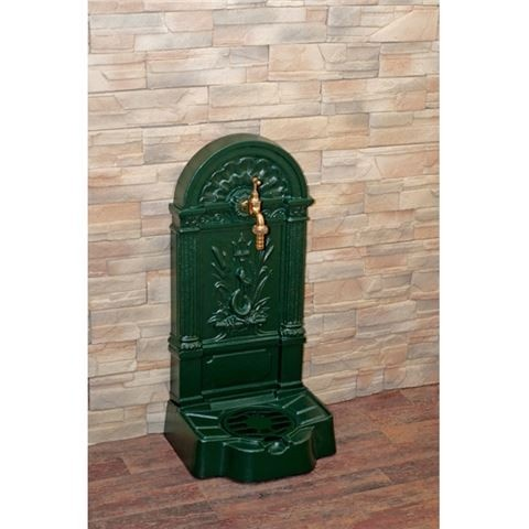 Fali állókút A falikút anyaga alumínium öntvény, ezért 100%-ban rozsdamentes. A festése ellen áll minden szélsőséges időjárási körülménynek. Üzembe helyezhető kültérre és beltérre egyaránt. FALI ÁLLÓKÚT SZÍNE: ZÖLD Anyag: Alumínium A kútkifolyót az ár