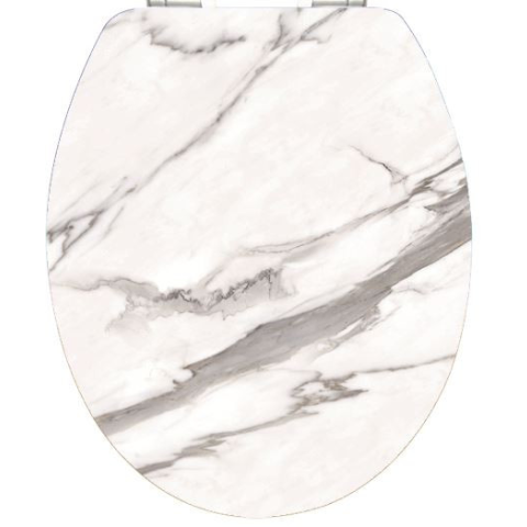 1 kép Panitalia Lecsapódásgátlós duroplast WC ülőke fehér márvány mintával rozsdamentes fémzsanérral