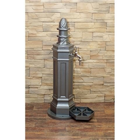 Állókút A kerti kút anyaga alumínium öntvény, ezért 100%-ban rozsdamentes. A festése ellen áll minden szélsőséges időjárási körülménynek. Üzembe helyezhető kültérre és beltérre egyaránt. A hatszögletű állókút díszes ívei faragott hatást keltenek. A díszk