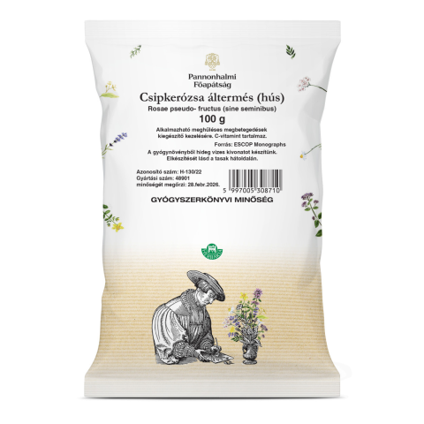 Pannonhalmi csipkerózsa áltermés (hús) tea 100 g Alkalmazható meghűléses megbetegedések kiegészítő kezelésére. 100% Csipkerózsa áltermés (Rosae pseudo-fructus)
