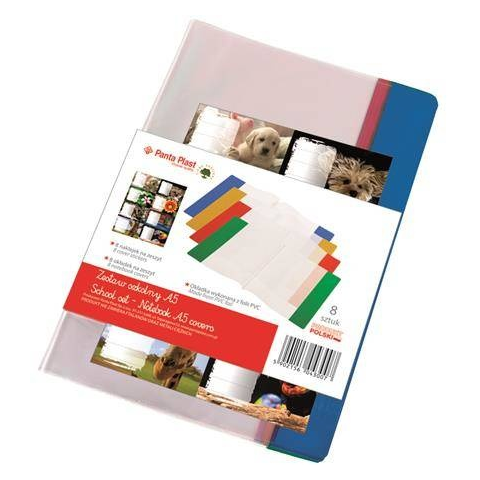 Füzet- és könyvborító + füzetcímke, A5, PVC, PANTA PLAST (INP0302000599) 8 darab füzetborító és hozzá 8 darab címke A5 anyaga: PVC Gyártó/első EU forgalmazó elérhetősége: Panta Plast Sp z o.o. Szparagowa 12, PL 91-211 Łódź Poland pantaplast@pantapl
