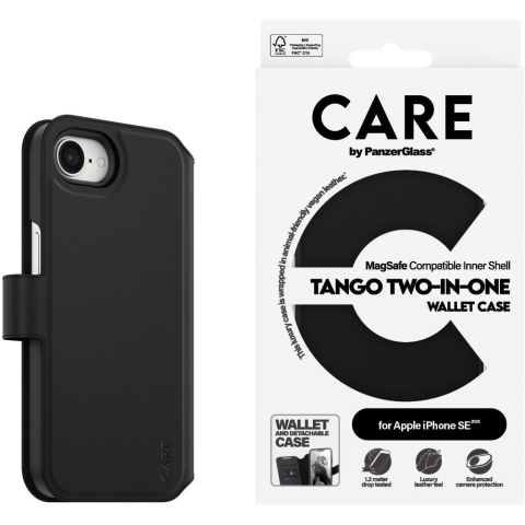 Mobiltelefon tok - Apple iPhone 16e tok, flipes, anyaga TPU és műbőr, MagSafe, vezeték nélküli töltéssel kompatibilis, kártyatartós, kijelző karcolás elleni védelme és kivágások a csatlakozóknak, gomboknak Tartós tok MagSafe támogatással és 4-kártyás tartóvalVértezd fel Apple iPhone mobiltelefonodat az új PanzerGlass CARE Tango 2in1 tokkal, amely egyesíti a készülék védelmét és egy praktikus, felcsatolh