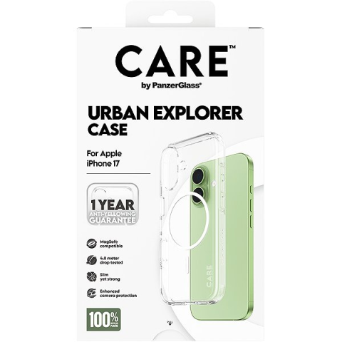 Telefon tok - Apple iPhone 17 tok, anyaga TPU és polikarbonát, kemény, MagSafe, vezeték nélküli töltéssel kompatibilis, kijelző karcolás elleni védelme, kivágások a csatlakozóknak, gomboknak Kryt na mobil PanzerGlass CARE Urban MagSafeSpojení odolnosti, stylu a jistoty v jednom krytu. PanzerGlass CARE Urban byl navržen tak, aby bez kompromisů obstál v každodenním shonu městského života i