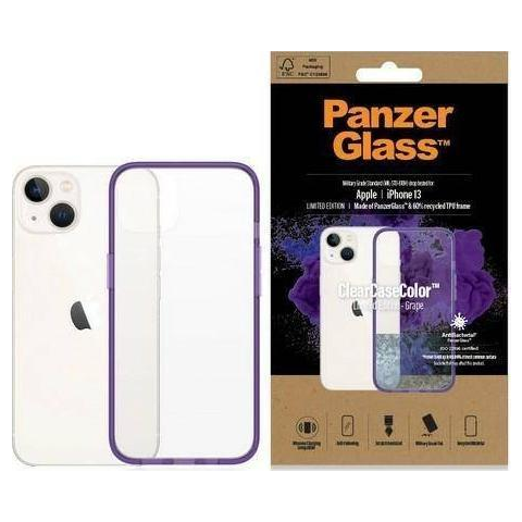1 kép PanzerGlass ClearCase iPhone 13 Antibacterial Military Telefon tok - Átlátszó / Lila (0332)