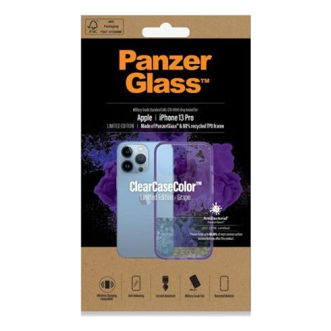 1 kép PanzerGlass ClearCase iPhone 13 Pro Antibacterial Military Telefon tok - Átlátszó / Lila (0337)