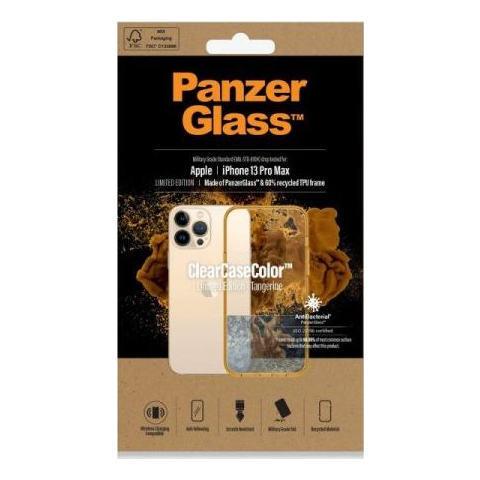 1 kép PanzerGlass ClearCase iPhone 13 Pro Max Antibacterial Military Telefon tok - Átlátszó / Narancs (0343)