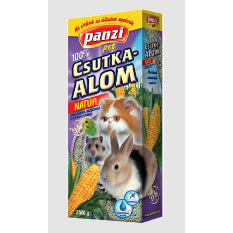 CSUTKAALOMA Panzi Natúr Csutkaalom – környezetbarát, kukoricacsutkából készült álomalom, kisrágcsálóknak és cicáknak.A kukorica csutkaalom különösen jó nedvszívó, szagtalanító hatású és nem utolsósorban teljesen természetes eredetű. Semmiféle adalékanyagot nem tartalmaz. Illata megegyezik a kukoricaföldek illatával.Kiszerelés: 2,5 kg