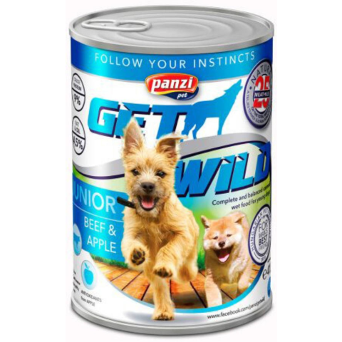 Teljes Panzi GetWild Dog Junior Beef & Apple konzerv 12x415g termékleírás
