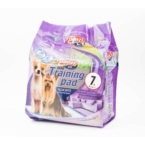 Panzi Helyhez szoktató - kutyapelenka 60x90cm (7db)Kölyök- és öreg, nehezen mozgó kutyák és más lakásban tartott kisállatok részére.60X90 cm- 7dbTermékleírás:A lakásban kutyát tartók között évről évre népszerűbbé váló termékek a kedvenceinkkel való együttélést segítő termékek. Ezek egyike a Panzi kutyapelenka! A lakásban tartott öreg kutyáknál - koruknál fogva - már sajnos jelentkezhetnek inkontinencia zavarok. Már nem bírják annyi ideig vizeletüket