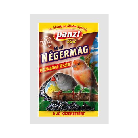 A PANZI NÉGERMAG puha héjú, vitaminokban gazdag mag. Kalitkában tartott kedvenceink szívesen fogyasztják, de a szabadban élő cinkék, pintyfélék is szeretnének csemegézni belőle. Fokozza az énekesmadarak fütyülési kedvét, fiókák neveléséhez is asjánlott. A fő eleséghez keverjen egy teáskanállal. Kedvenceink az odaadó gondoskodást vidám élénkéséggel, ragyogó tollazattal hálálják meg. 50 ml