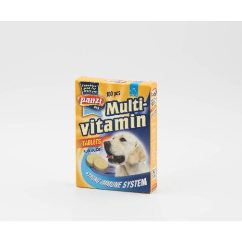 A Panzi Multivitamin kutyák számára teljes körű vitamin- és ásványianyag-pótlást biztosít. Erősíti az immunrendszert, támogatja a vitalitást és a szőrzet egészségét. Ízletes tabletta formában, 100 darabos kiszerelésben kapható. A Panzi Multivitamin kut