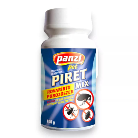 PIRET MIX POROZÓSZER A Panzi PiretMix rovarirtó porozó szer – bolhák és más rovarok hatékony távoltartására, természetes piretrin tartalommal. Biztos ölő és távoltartó hatás több hétig. Felhasználhatóság: Zárt térben rejtett életmódú rovarok (pl. csótány