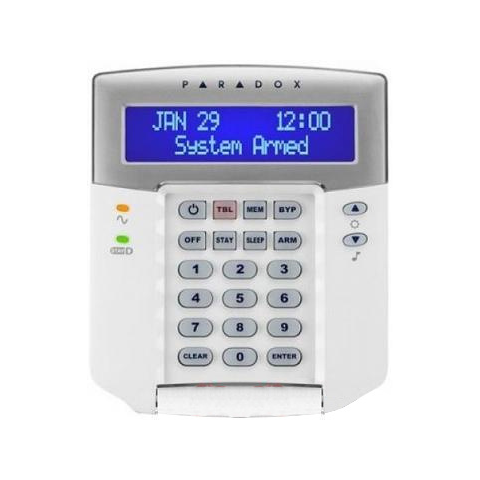 Paradox alfanumerikus LCD kezelő kék háttérrel A kezelő főbb jellemzői Új, lekerekített, modern megjelenésű burkolattal. 32-karakteres LCD programozható címkékkel (Memóriakulccsal, WinLoad-dal, NEware-rel vagy a Modul."Üzenet mindenkinek" szolgáltatással). Kék színű háttérvilágítás. Egyszerűsített távirányító programozás. Zóna alarm kijelzés: a risztásban lévő zónát a rendszer hatástalanításáig kijelzi. A firmware a WinLoad és a CONV4USB