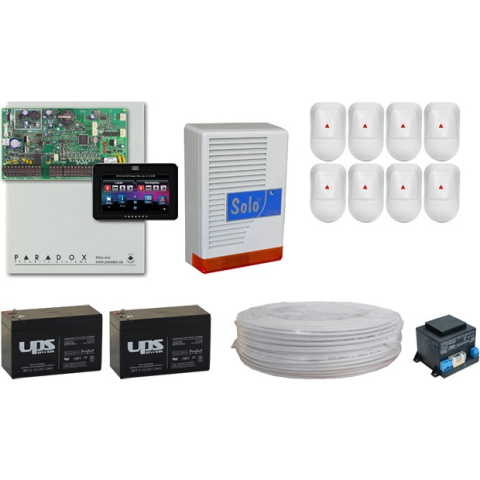 8 infraérzékelős riasztóközpont kültéri szirénával, akkumulátorokkal és érintőképernyős TFT kezelővel Ez a rendkívül jó minőségű rendszer kompletten tartalmaz mindent, ami egy megbízható riasztórendszerhez szükséges. Egyedi igények esetén bármikor bővíthető. A riasztóközpont részei 1 db PARADOX Digiplex EVO192 8 zónás riasztóközpont (192-ig bővíthető) 1 db PARADOX TM50 érintőképernyős, 5 colos, TFT kezelő 1 db PARADOX fémdoboz 8 db PARADO