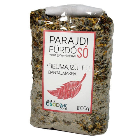 Parajdi fürdősó valódi gyógynövényekkel reumatikus és izületi bántalmakra. Több millió éves és ipari szennyeződésektől mentes természetes alapanyagú készítmény. 100 % parajdi só - körömvirág - levendula - csalán -diófalevél - bodza. Összetevők: parajdi só