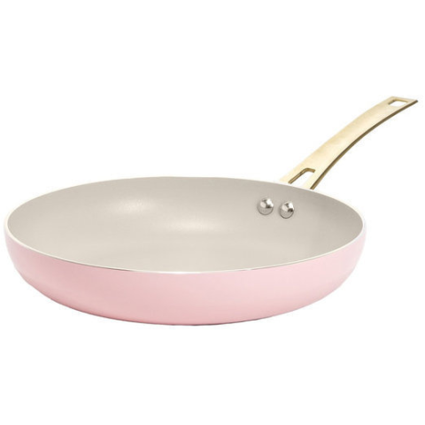 Serpenyő - kerámia, kerek, az edény teste alumíniumból készült, használható elektromos, gáz, üvegkerámia és indukciós főzőlapon, tapadásmentes felület, alumínium külső felület, ergonomikus, rozsdamentes acél és acél fogantyú, méretei 4,5 × 26 × 46 cm (ma × szé × h), bézs, rózsaszín és arany kivitel A Paris Hilton serpenyő a funkcionalitás és a stílusos design nagyszerű kombinációja, alumíniumból készült, rózsaszín külső felülettel. A belső ker
