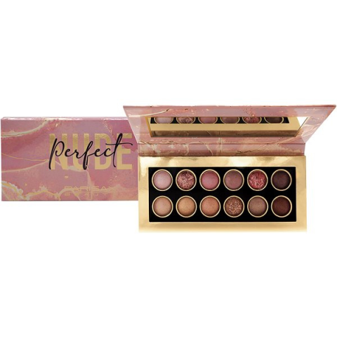 Szemhéjpúder paletta - nude tónus, 5+ színárnyalat 12 szemhéjfestéket tartalmazó paletta porpúderből. Speciális eljárással készült laza púder. A szemhéjfesték krémes és gyöngyházfényű textúrával rendelkezik. A paletta tükröt is tartalmaz. Használati ú