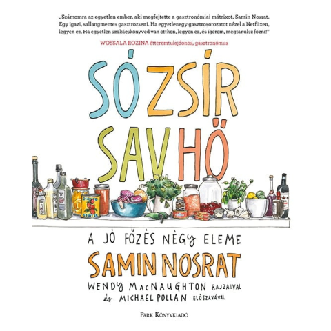 Samin Nosrat másodéves egyetemistaként került kapcsolatba a főzéssel, amikor Kalifornia egyik emblematikus éttermében, a Chez Panisse-ban kezdett dolgozni, ahol a ranglétra összes fokát végigjárva séf lett. Azóta a főzés a szenvedélye, akármerre járt a világban, Japántól Mexikóig, Olaszországtól Amerikáig az ízek titkát kutatta, és azt tapasztalta, hogy az ételt négy elem tesz tökéletessé vagy tesz tönkre: a só, a zsír, a sav vagy a hő.A só, ami felerősí
