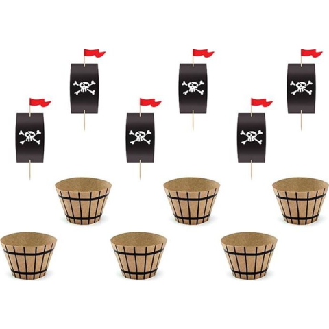 1 kép Party Deco Muffin Díszítő Készlet, Kalózos, Papír, Barna, Fekete, 6 db (5902230795150)