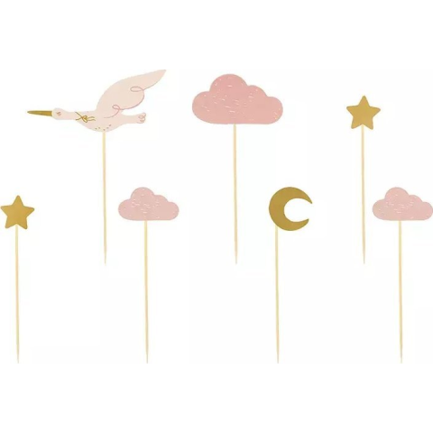 Party Deco Tortadísz Gólya Papír 12 cm Rózsaszín, Arany (5904555014541)