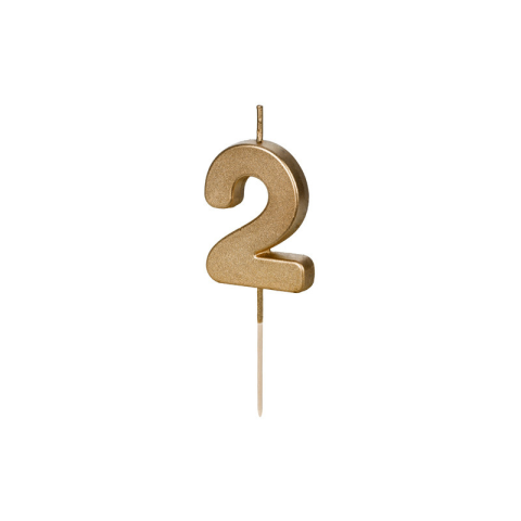 Elegáns aranyszínű, 2-es szám alakú születésnapi gyertya, tökéletes tortadísz születésnapokra és évfordulókra