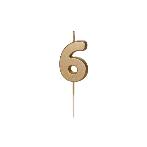 Elegáns aranyszínű, 6-os szám alakú születésnapi gyertya, tökéletes tortadísz születésnapokra és évfordulókra. Elegáns aranyszínű 6-os szám alakú születésnapi gyertya, amely tökéletes választás torták és ünnepi sütemények díszítésére. Mérete kb. 4,5 cm