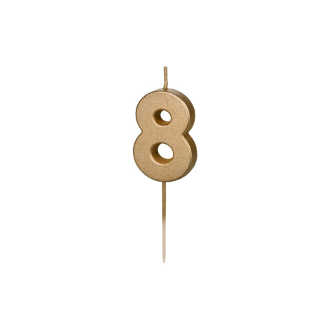 8-as számú születésnapi gyertya arany színben, mérete kb. 5,5 cm, keverjük össze