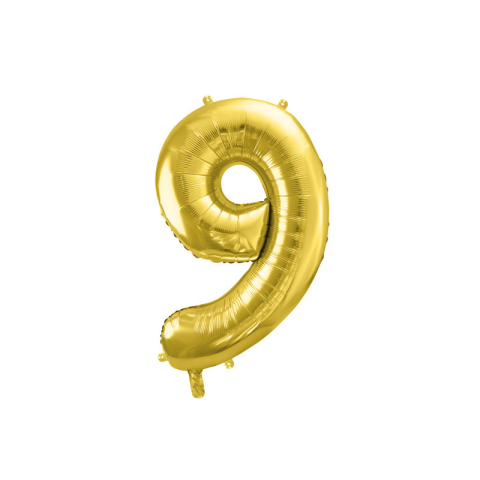 PartyDeco fólia szám lufi, 9, világos arany, 72 cm Ez egy halvány-arany színű, 72 cm-es fólia lufi, amely 9 formájú. Alkalmas mind levegővel, mind héliummal történő felfújásra.