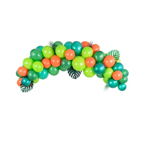 PartyDeco lufi girland, dino, 200cm Dino lufi girland, a készlet 60 lufit tartalmaz (16 metál zöld fű színű, 17 pasztell zöld alma színű, 14 metál zöld színű és 13 pasztell narancs színű) és kb. 2,5 m szalagot a lufi girlandhoz. A használati útmutatót