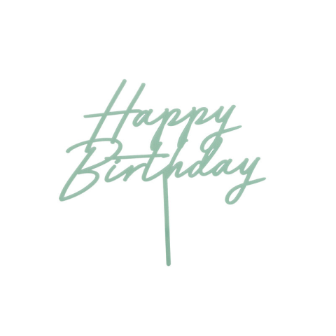 Elegáns, matt zöld akril tortadísz „Happy Birthday” felirattal, tökéletes születésnapi torták stílusos kiegészítőjeként. Elegáns és modern matt zöld akril tortadísz beszúró „Happy Birthday” felirattal, amely tökéletes kiegészítője születésnapi tortákna