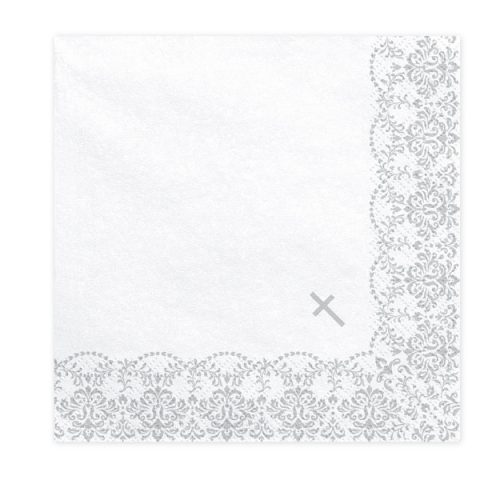 1 kép    PartyDeco Szalvéta Keresztelőre ezüst mintákkal