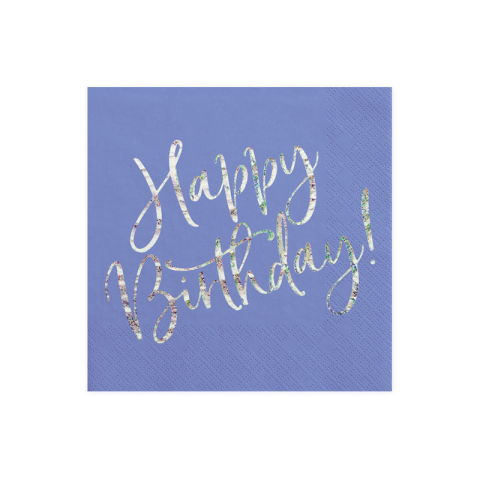 PartyDeco Happ Birthday szalvéta, kék, 33×33cm, 20db Papírszalvéták tengerészkék színben, holografikus Happy Birthday felirattal. Méret kiterítve: kb. 33 x 33 cm, méret összehajtva: kb. 16,5 x 16,5 cm. Csomagolás: 1 csomag / 20 db. Tökéletes választás