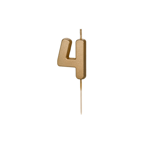 Elegáns aranyszínű, 4-es szám alakú születésnapi gyertya, tökéletes tortadísz születésnapokra és évfordulókra. Elegáns aranyszínű 4-es szám alakú születésnapi gyertya, amely tökéletes választás torták és ünnepi sütemények díszítésére. Mérete kb. 4,5 cm