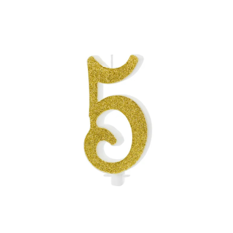 1 kép    PartyDeco születésnapi glitter gyertya, 5, arany, 10cm