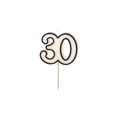 Ünnepeld a 30. születésnapot stílusosan ezzel a modern, fehér-fekete számgyertyával! Ünnepeld a 30. születésnapot stílusosan ezzel a modern, fehér-fekete számgyertyával! A 5,5 cm magas gyertya elegáns megjelenésével tökéletesen illik bármilyen tortára,
