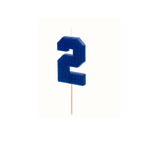 PartyDeco születésnapi lego gyertya, 2, kék, 6cm