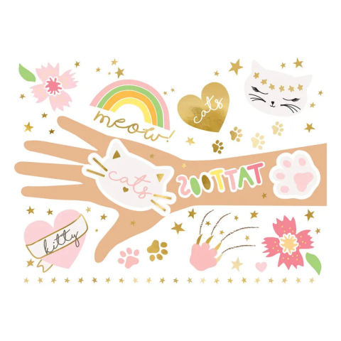 PartyDeco tattoo, cica, 12 db Ideiglenes cica tetoválások, minták és színek keveréke, a készlet 12 különböző mintát tartalmaz.