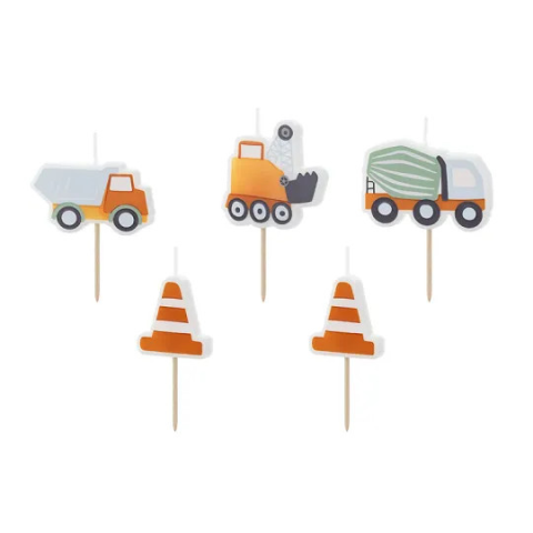 PartyDeco tematikus gyertya, Járművek, 5db 5db 3,5 cm-es rakodógépes gyertya szülinapi tortákhoz.