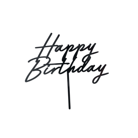Elegáns, fekete akril tortadísz „Happy Birthday” felirattal, stílusos kiegészítő születésnapi tortákhoz