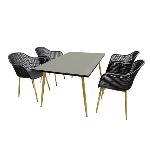Modern fekete kerti étkezőgarnitúra 4 székkel és üveg asztallal 😎 Elegáns és praktikus kerti bútor garnitúra, amely tökéletesen illeszkedik modern kertjébe. Az edzett üvegből készült asztal és a strapabíró PP anyagból készült, kényelmes székek garant...