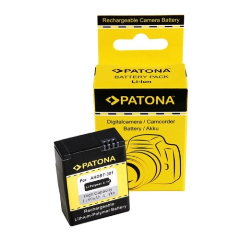 Gopro Hero 3 akkumulátor GoPro 3 készülékekhez AHDBT-201 AHDBT-301 AHDBT-302 AHDBT201 AHDBT301 AHDBT302 	1180 mAh kapacitás 	Patona német minőség PATONA GoPro Hero 3 - AHDBT-201 AHDBT-301 AHDBT-302 akkumulátor Kompatibilis GoPro készülé