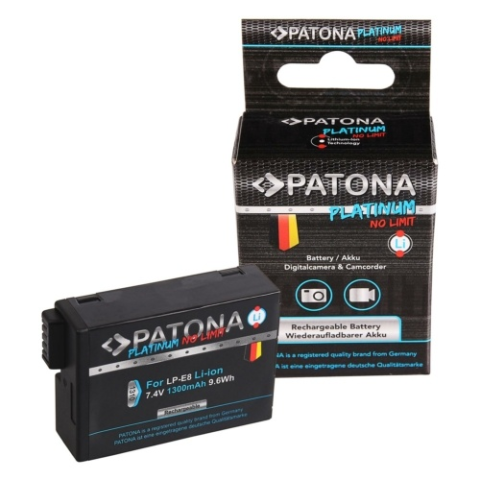 PATONA PLATINUM Canon LP-E8 LPE8 akkumulátor LP-E8 LPE8 EOS 550D, 600D 650D 700D akkumulátor 1300mah kapacitás Patona német minőség PATONA Platinum Canon LP-E8 LPE8 akkumulátor 1300mAh Canon EOS DSLR - 550D, 600D 650D 700D akkumulátor Kompatibilis
