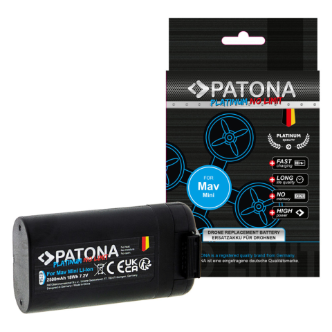 Patona Platinum DJI Mavic Mini Akkumulátor 2500mAh (CP.MA.00000135.01, MB2-2400mAh-7.2V) Patona német minőségű DJI Mavic Mini akkumulátorcella és nagy kapacitás, amely hosszú életciklusú. 2500 mAh valós kapacitás - nagy kapacitás Patona német minőségű ce