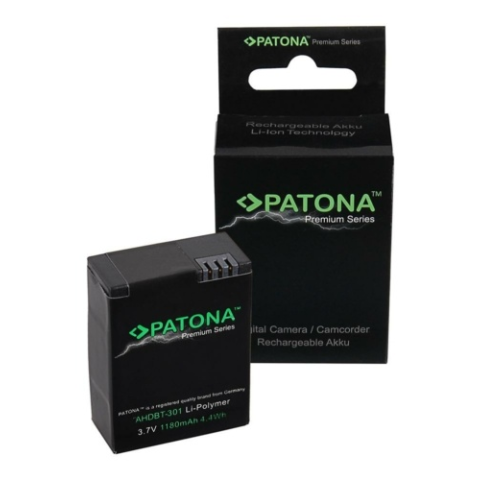 PATONA Prémium Gopro Hero 3 akkumulátor GoPro 3 készülékekhez AHDBT-201 AHDBT-301 AHDBT-302 AHDBT201 AHDBT301 AHDBT302 	1180 mAh kapacitás 	Patona német minőség PATONA Premium GoPro Hero 3 - AHDBT-201 AHDBT-301 AHDBT-302 akkumulátor Kompatibili