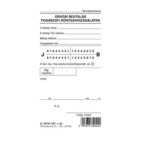 1 kép PÁTRIA Fogászati beutaló szabadlap 84x148 mm A.3510-167