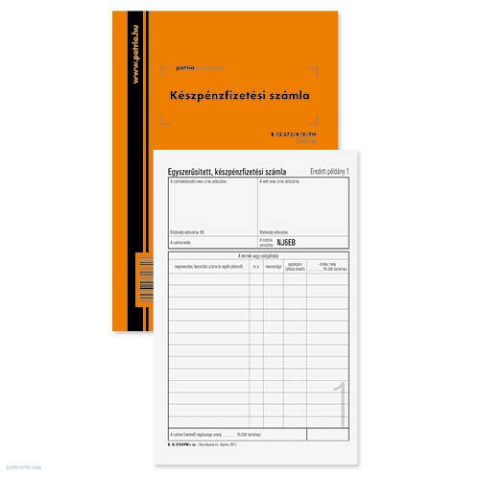 az egyik leggyakrabban használt nyomtatványtípus; szigorú számadású bizonylat sorfolytonos számozással; áru értékesítésekor, szolgáltatás igénybevételekor a teljesítés igazolására szolgál és alkalmas az áfa elszámolására 50 x 3 lapos tűzött tömb méret: A