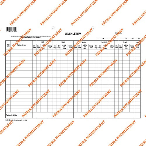 Pátria Nyomtatvány 5 napos jelenléti ív szabadlap A/4 fekvő nyomtatvány 1 kép