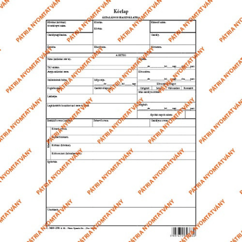 1 kép Pátria Nyomtatvány Általános kórlap szabadlap A/4 négyoldalas